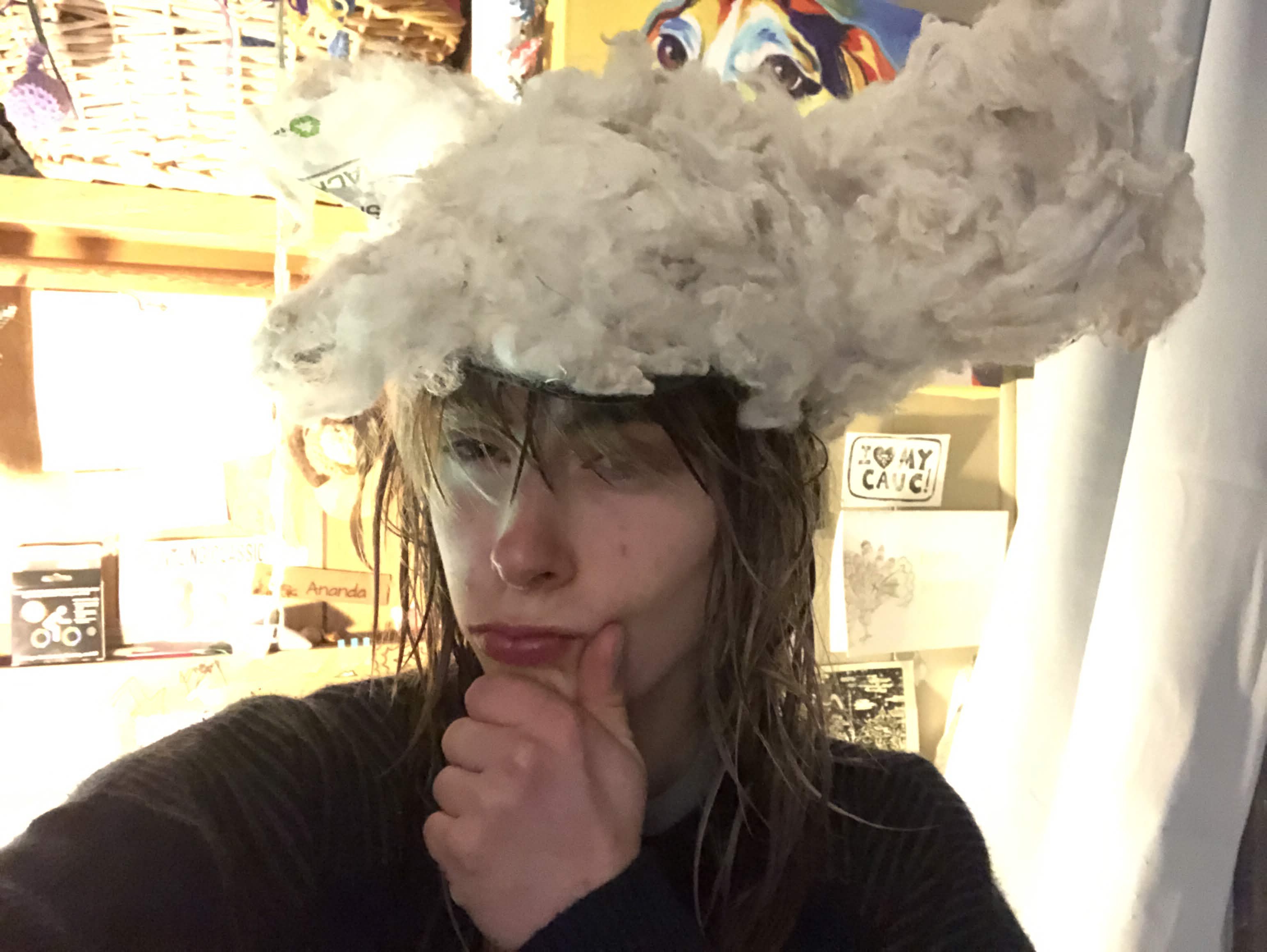so Im in my towns variety show opening act....pretty cool B-) I cant dispose much cus its secret, but I had to make a sheep costume! I got given a ton of fleece, so I reserched sheep heads, and made cardboard ears in a sheep shape. I wanted to use normal glue to attach the fleece, but it was MESSY!!! SO hot glue to the rescue. I decided to attach in in strips, then use scissors to modify the end result. Pretty cool man, Im gonna add more decor to make it more of a character! keep ya'll updated!
